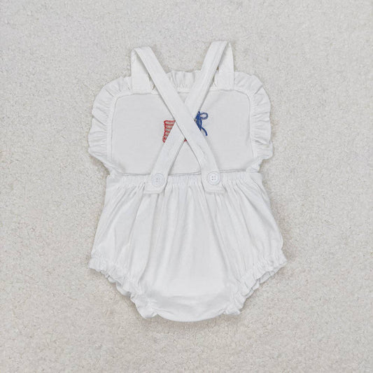 Baby Infant Girls Ruffle White Flag 4th of July Rompers