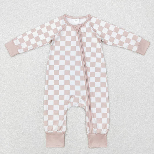 Baby Infant Kids Boys Girls Checkered Long Sleeve Zip Sleepe