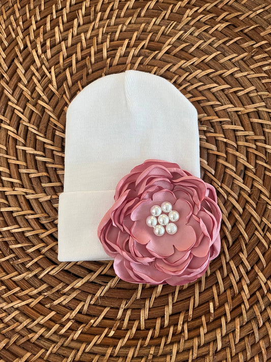 Ilybean Pearl Bow Hospital Hat for Newborn Girls - 3 Colors