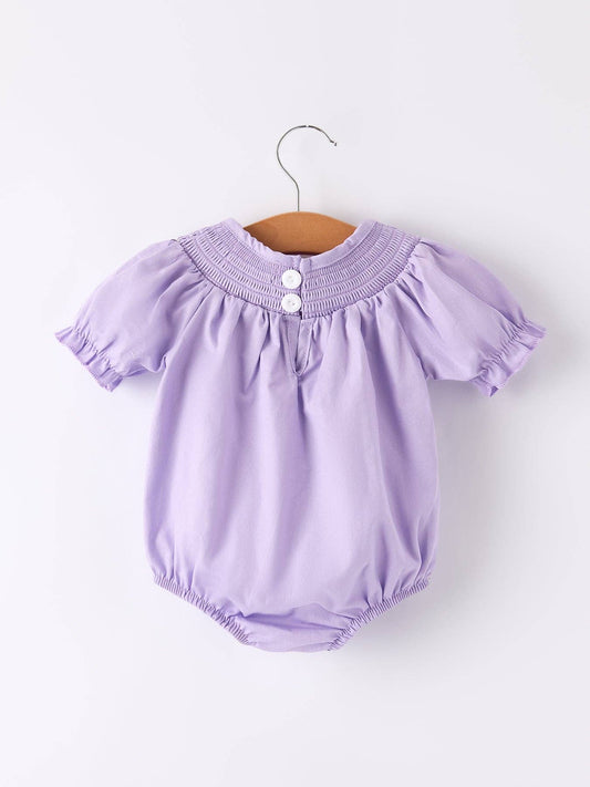 Girls Butterfly Smocking Embroidered Purple Romper