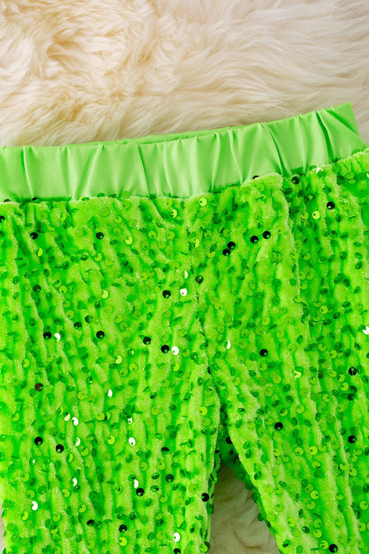 NEON GREEN SEQUINS BELL BOTTOMS.