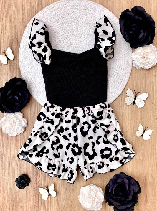 Roaring Fun Leopard Print Top and Ruffle Short Set