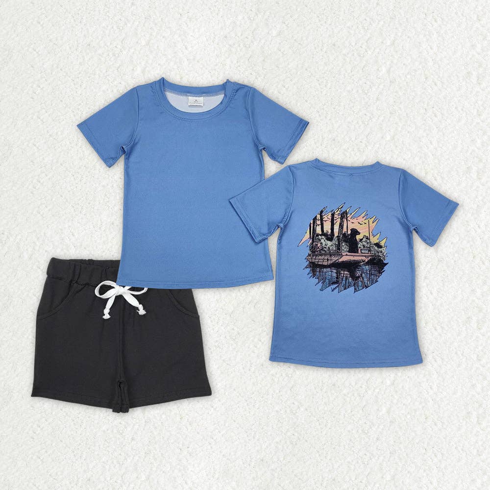Baby Boys Blue Dog Hunting Shirts Pocket Shorts Clothes Sets