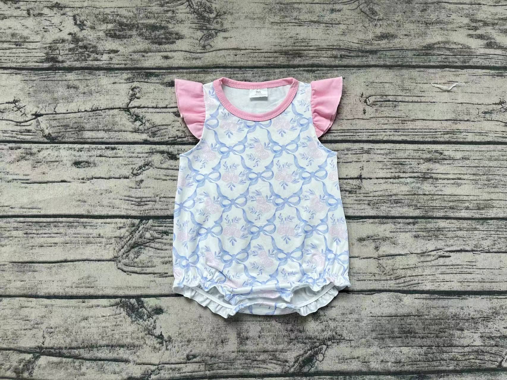 Baby Girls Blue Bows Flutter Sleeve Summer Rompers