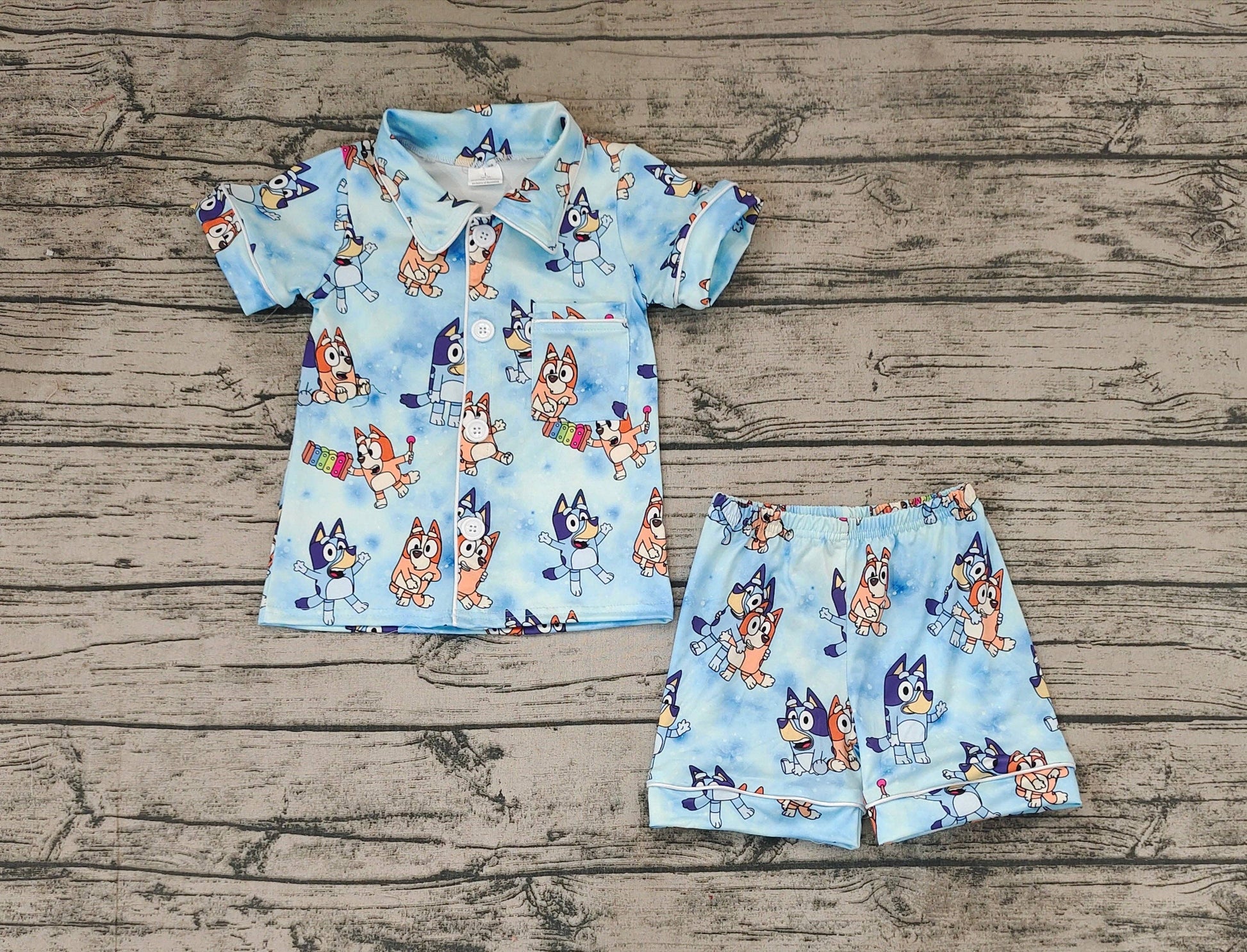 Baby Girls Boys Dogs Blue Buttons Shirt Shorts Pajamas Clothes Sets
