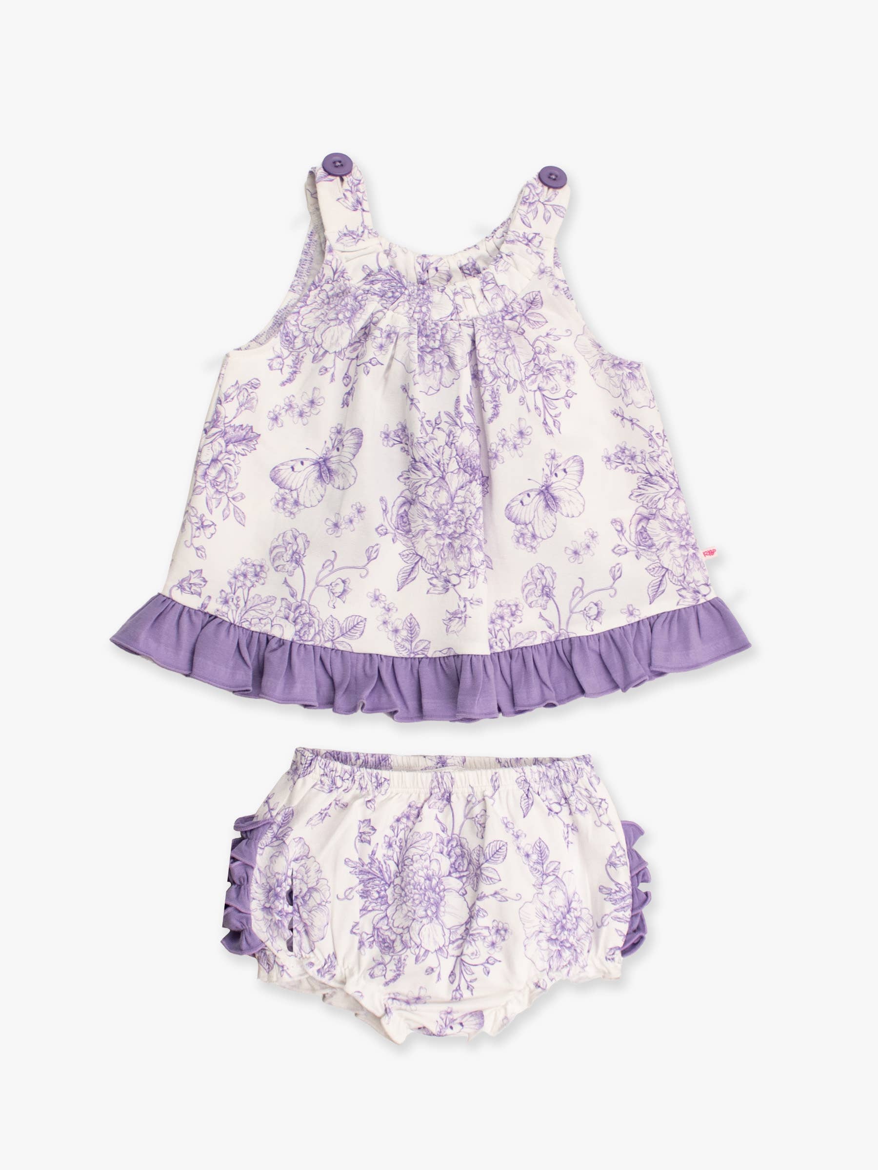 Baby Girls Wisteria Purple Butterfly Garden Toile Knit Swing Top & Bloomer Set