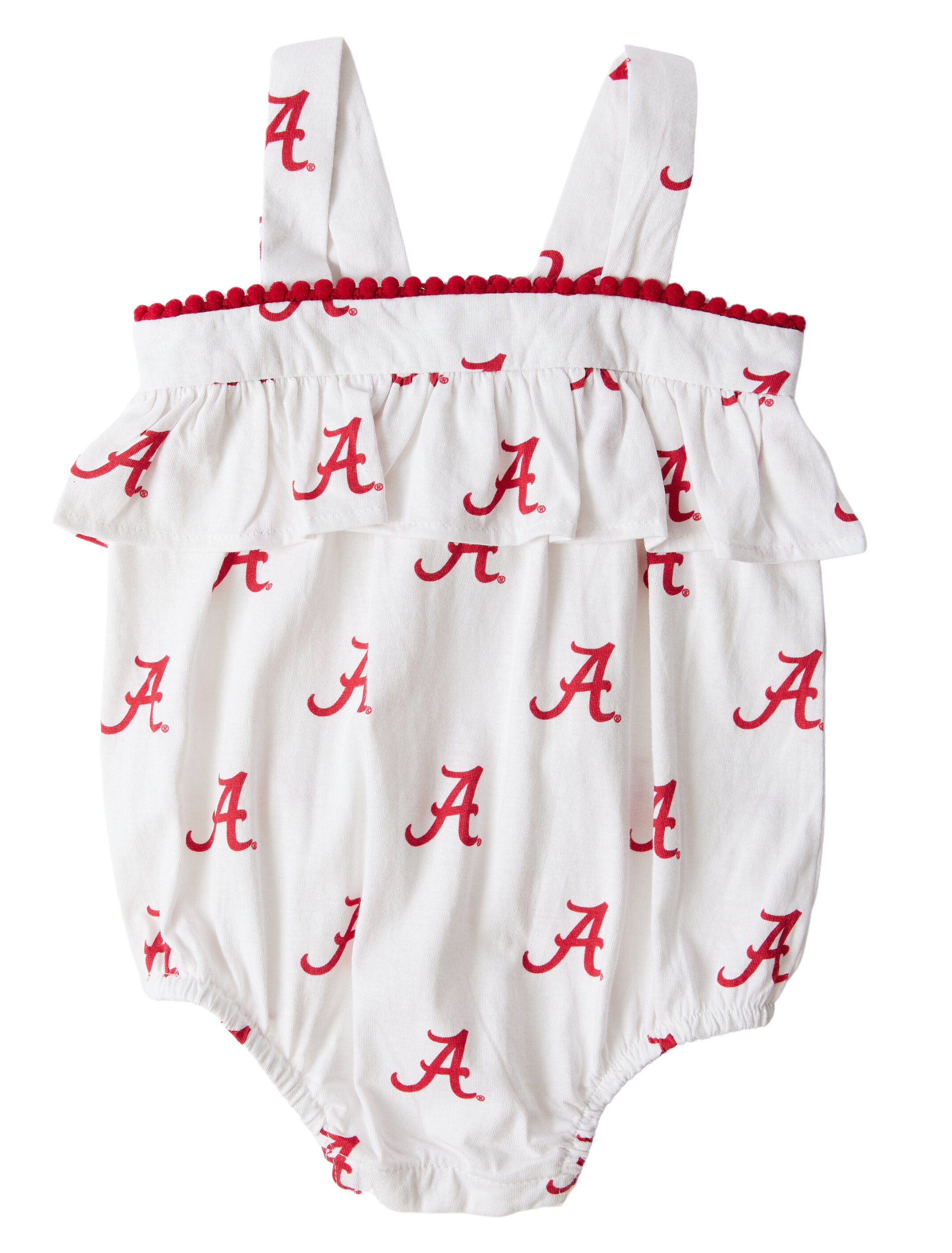 Treat your little one to her first game day outfit with this sweet one-piece. Our bubble features tank straps, ruffles at the chest, and snaps at the inseam for the perfect game day look.