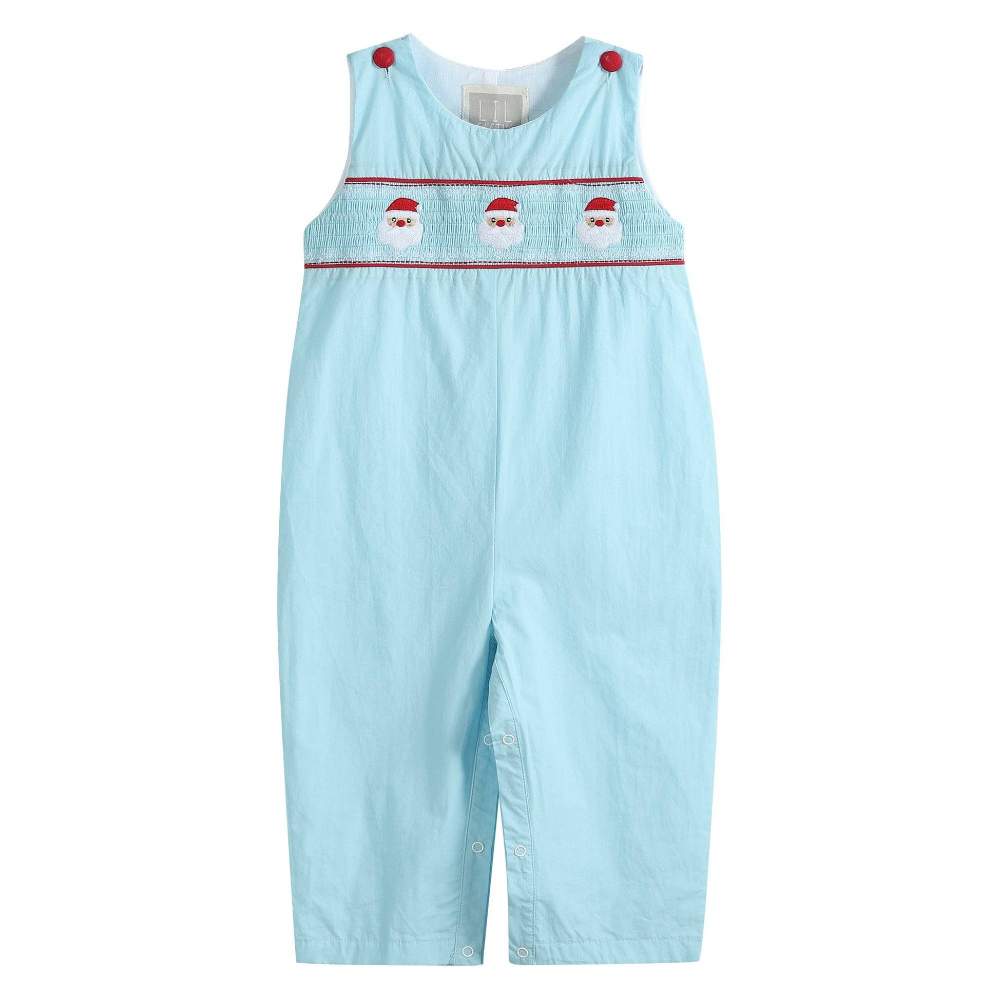 Merry and Bright! These Lil Cactus overalls are made in a beautiful light blue 100% soft cotton. They feature cute Santa embroidery, smocking, and snap enclosures for easy changing. The perfect outfit for your little guy and all of your winter fun. From pictures with Santa to the big Holiday meal; no matter the occasion he will be looking picture-perfect!