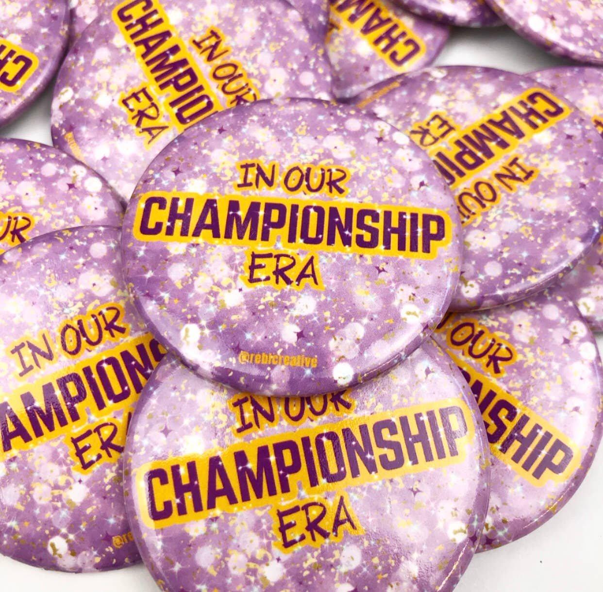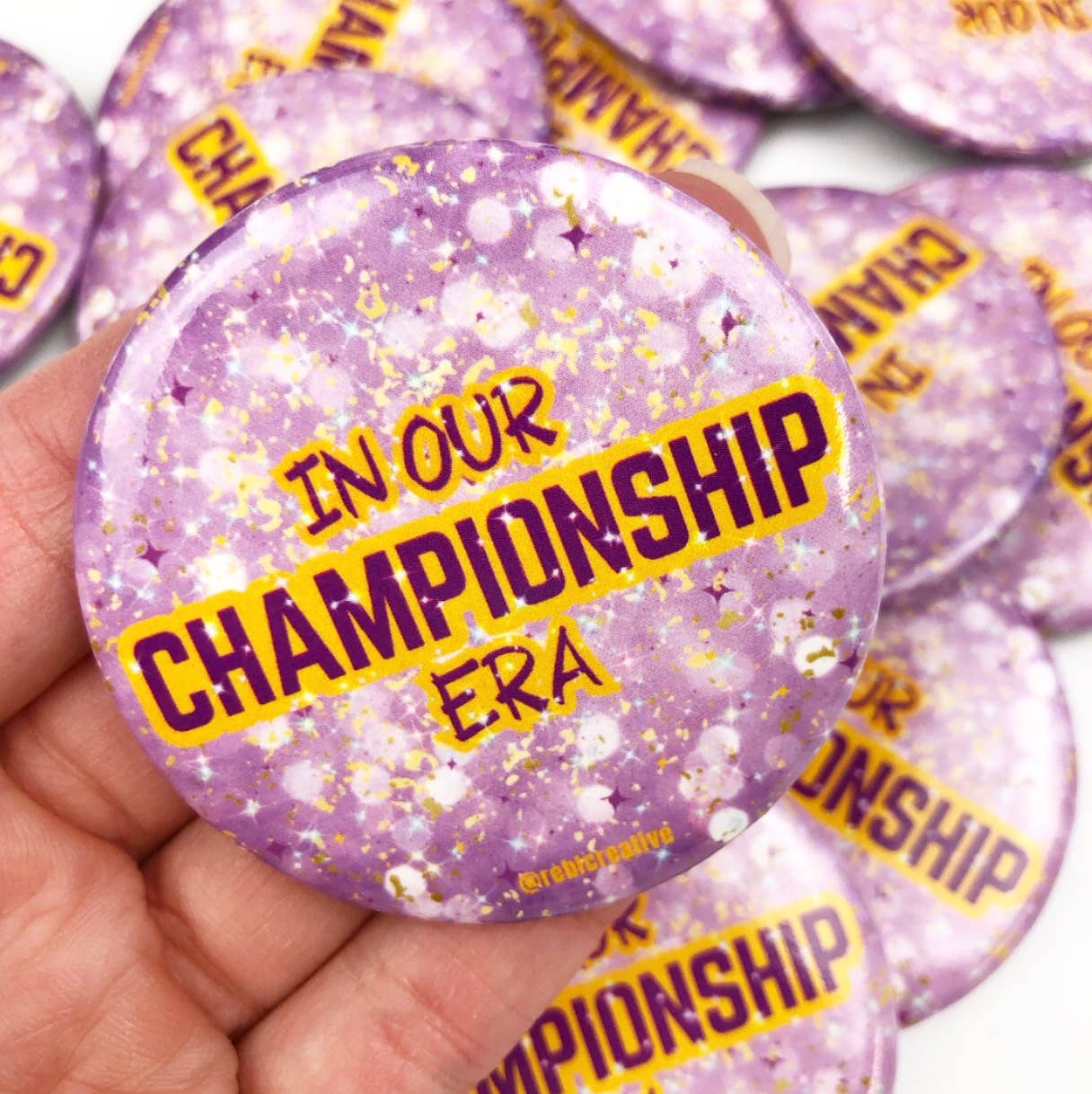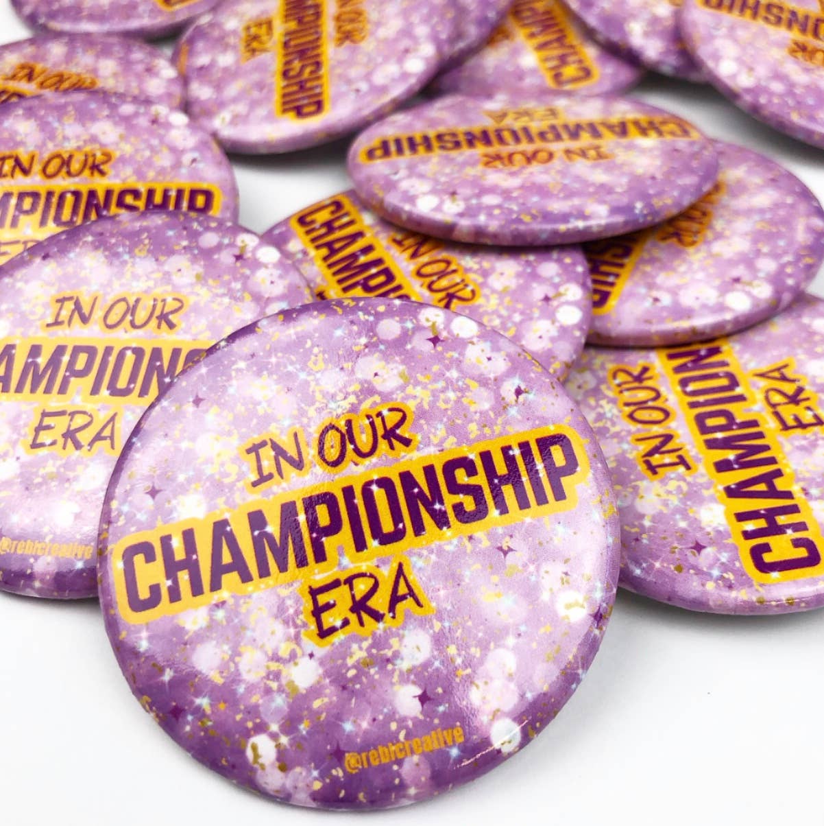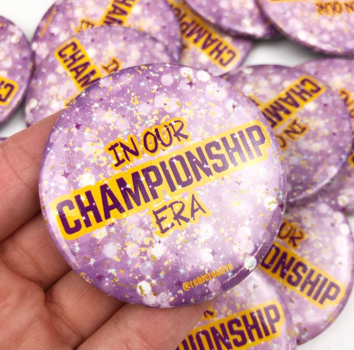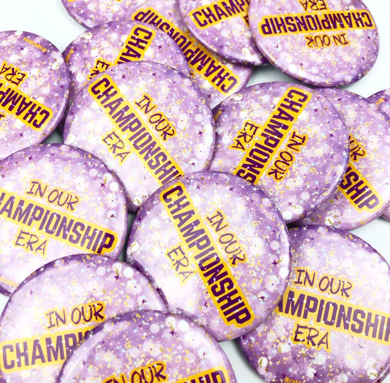 Each pin back button is 2.25 inches in diameter. These buttons are super lightweight and perfect for Game Day! Add to your outfit or a purse strap to complete your game day look. Each button is finished with a plastic coating to keep your button clean from any game day activities!