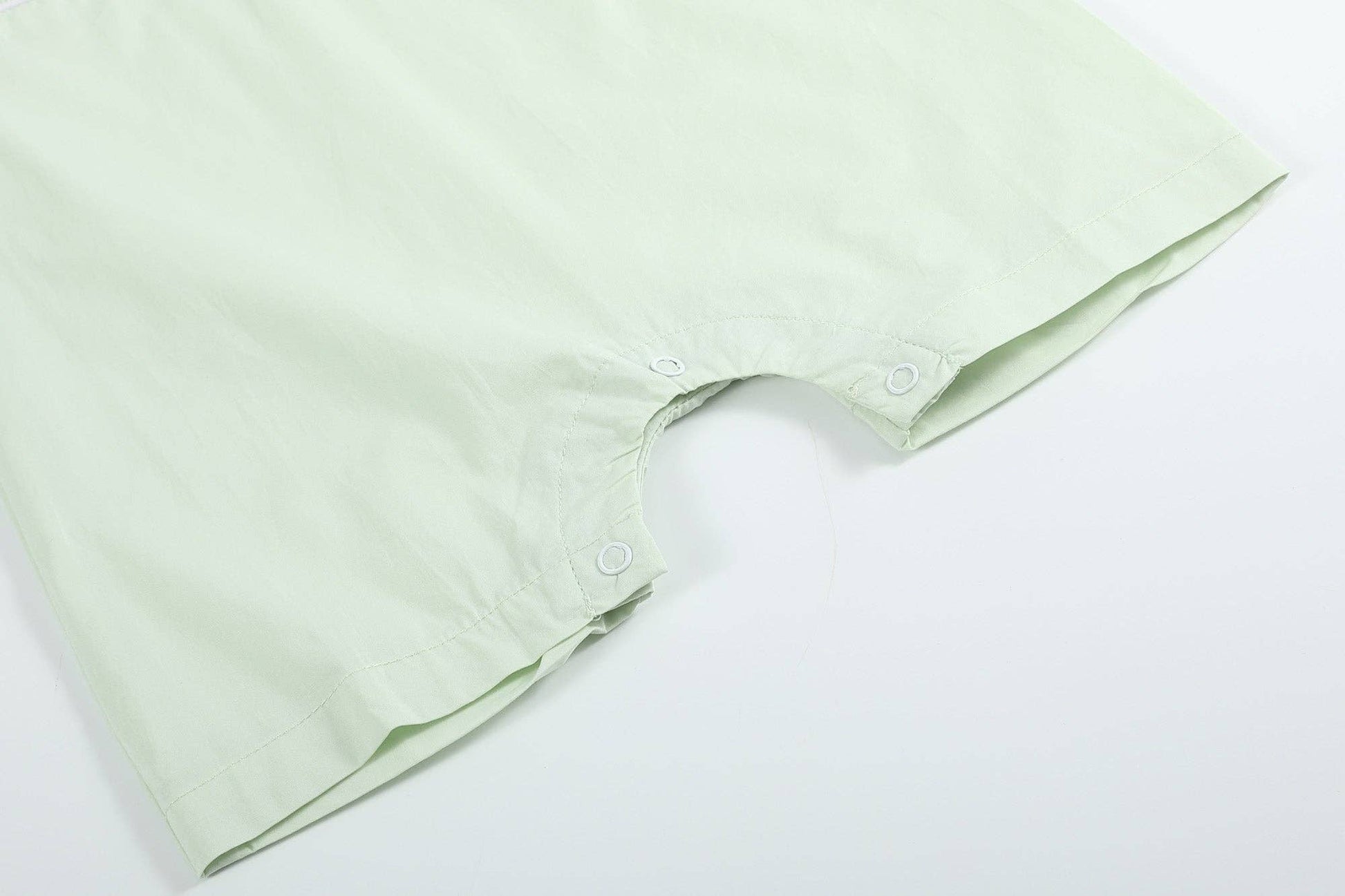 Your little one will hop down the bunny trail in these adorable light green Bunny Smocked Shortalls! Perfect for dressy occasions or everyday play, these stylish overalls feature delicate smocking and sweet embroidered bunnies with pompom tails. Has buttons at the shoulder to allow for sizing adjustment and snaps at the crotch for easy diaper changes. Get a jump on the season with this cheerful Easter outfit!