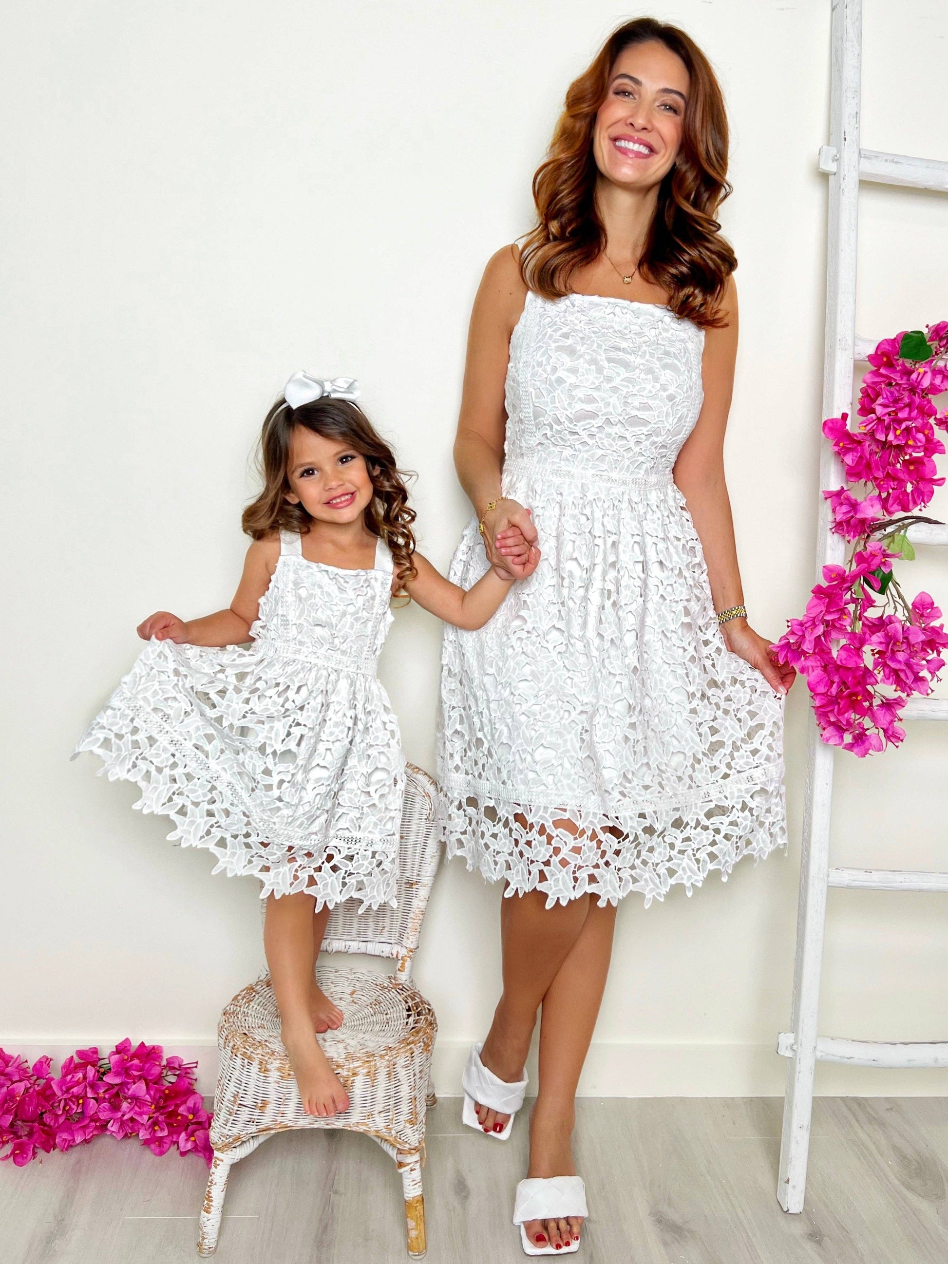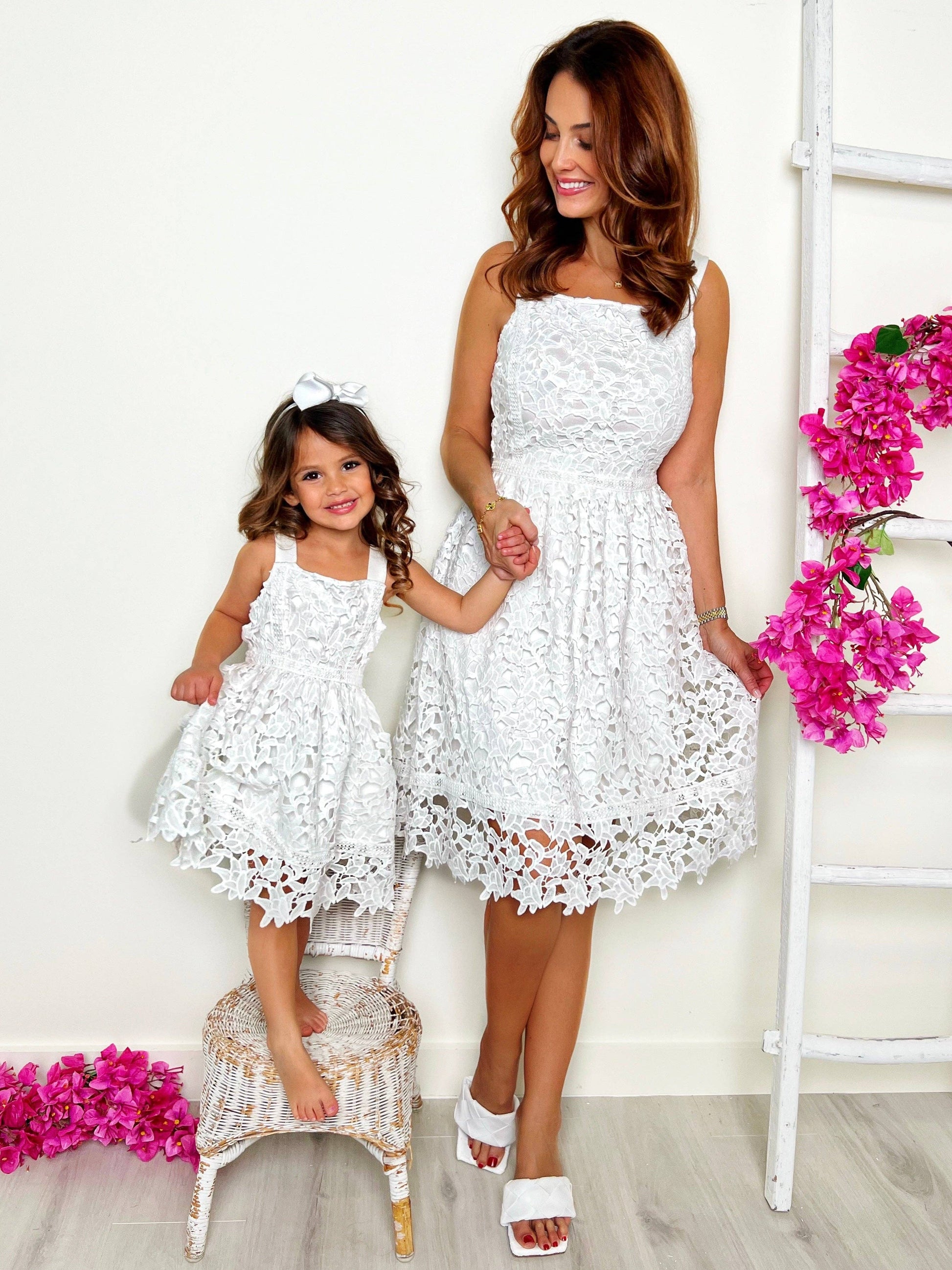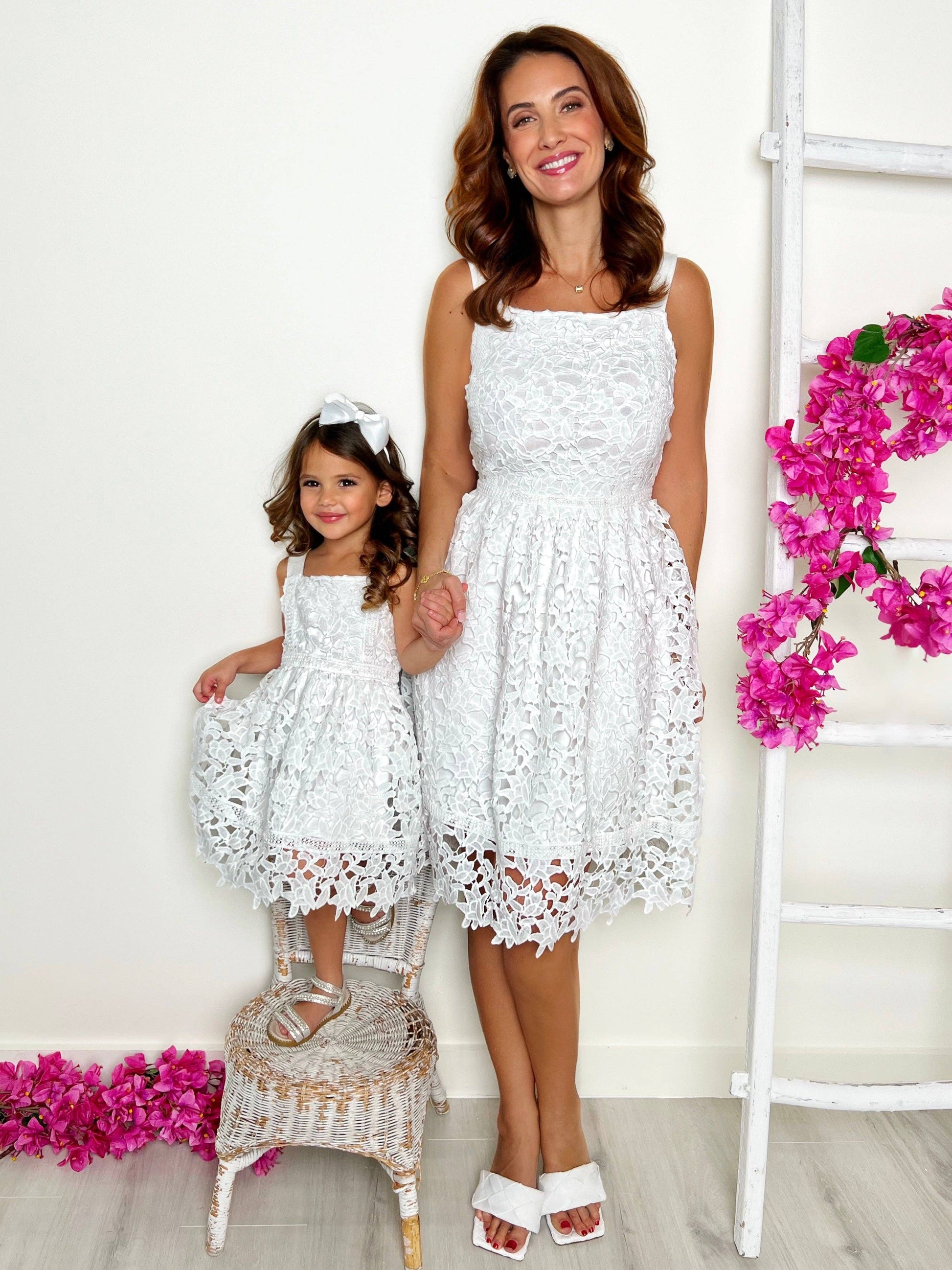 Mommy And Me Lovely In White Eyelet Lace Dress