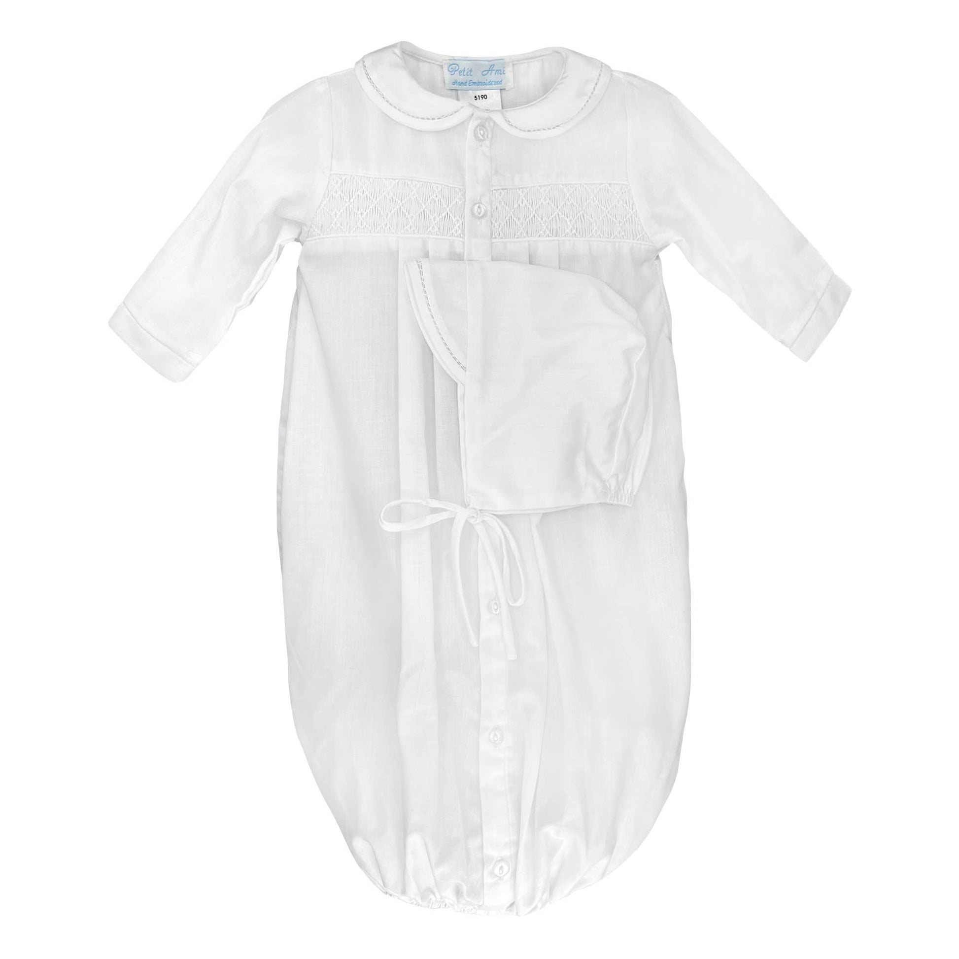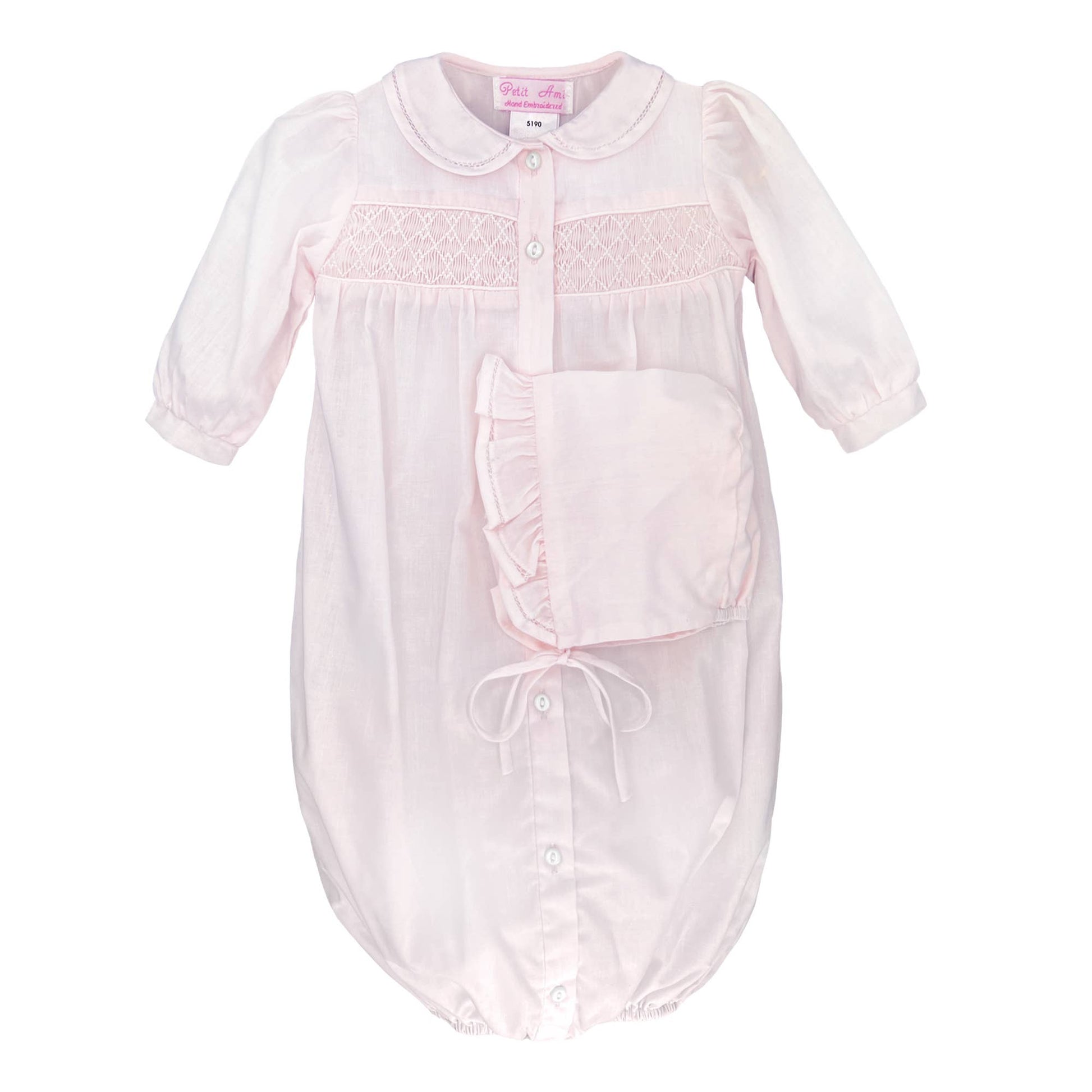 A simple and traditional smocked bag that is perfect for coming home from the hospital or babies first photos!